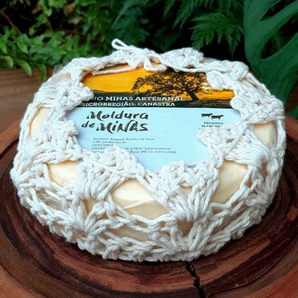 Queijo Moldura de Minas é um queijo Canastra artesanal produzido na Serra da Canastra (região de Bambuí-MG), que reúne textura amanteigada, aroma levemente terroso e sabor característico do terroir da Canastra — equilibrado entre cremosidade e um leve toque picante quando mais maturado. Cada peça é feita com leite cru de vaca e maturada por aproximadamente 18–22 dias, resultando numa casca dourada e um miolo macio, perfeito para tábuas, sanduíches gourmets ou para harmonizar com cafés e vinhos.